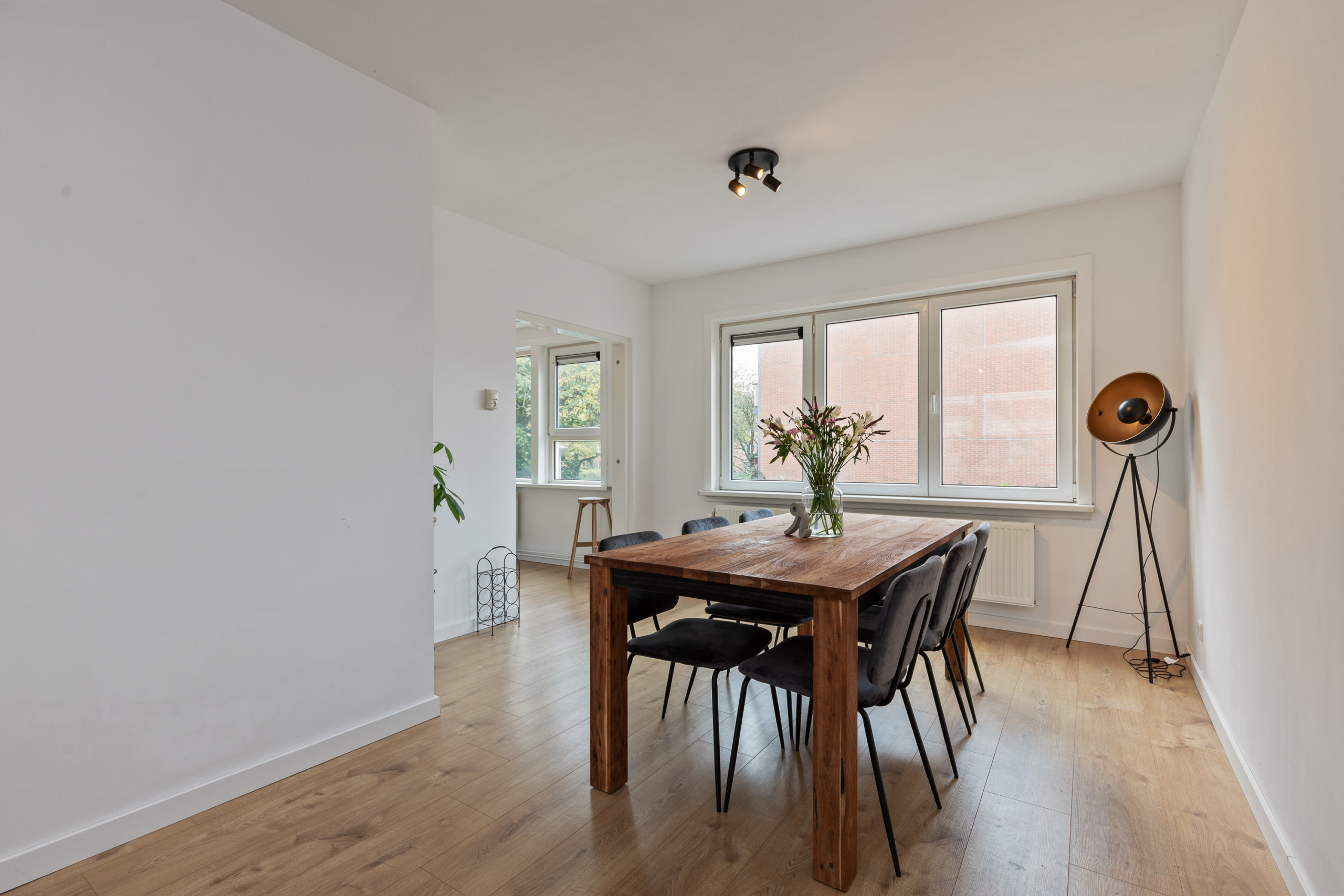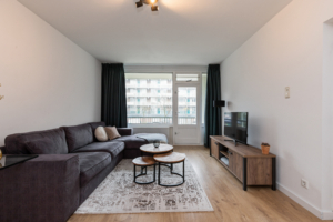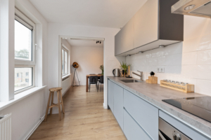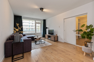 Bij binnenkomst betreed je de hal die toegang biedt tot alle vertrekken. De woonkamer vormt samen met de open keuken een prettige en lichte leefruimte. Dankzij de strakke afwerking en de moderne inrichting voelt het appartement direct verzorgd en instap klaar aan.