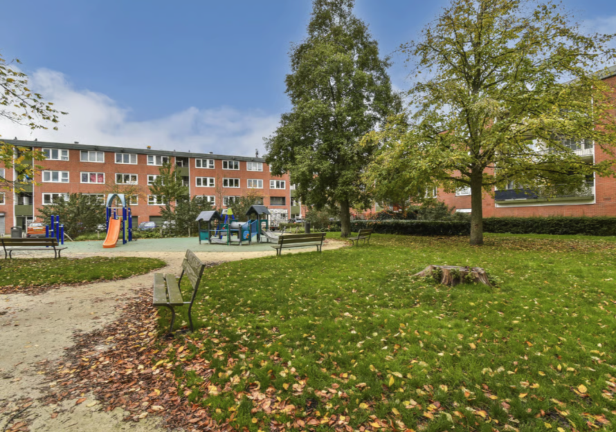 Naast het balkon beschikt de woning over een privé berging van circa 5 m², ideaal voor het stallen van fietsen en het opbergen van extra spullen.Locatie