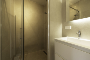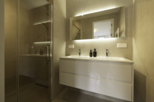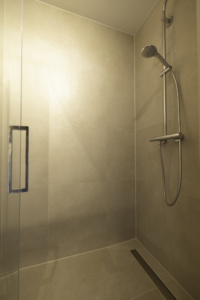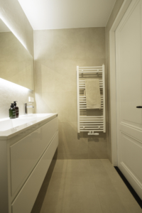 - Luxe badkamer met douche en wastafel, separaat zwevend toilet