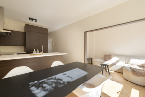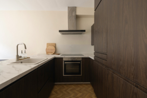 - Moderne keuken met inbouwapparatuur (kookplaat, vaatwasser, combi-oven/magnetron)
