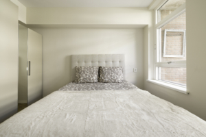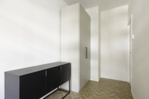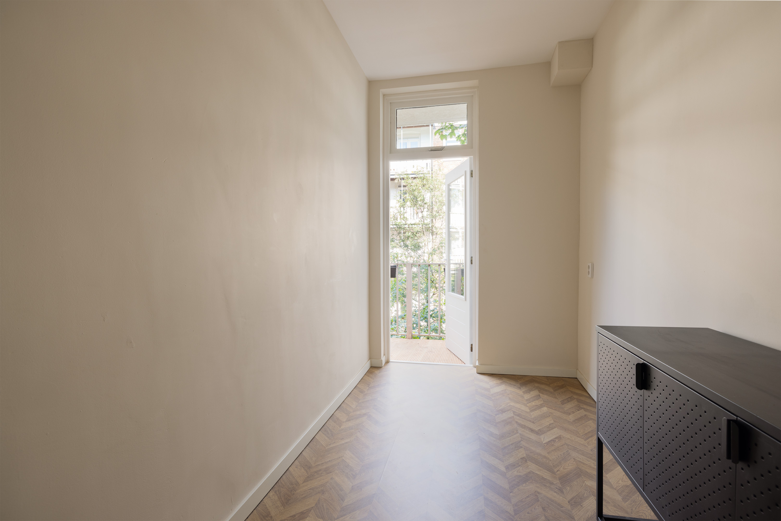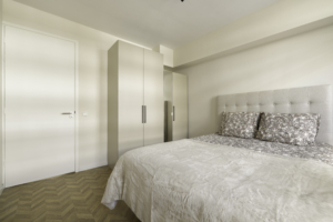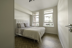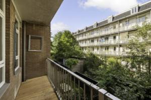 Daarnaast beschikt de woning over twee slaapkamers: een ruime hoofdslaapkamer en een tweede kamer die ideaal is als kinderkamer, werkkamer of inloopkast. De badkamer is eigentijds ingericht met een inloopdouche en wastafel. Het toilet is separaat. Het balkon aan de achterzijde van de woning biedt een fijne plek om in de middag- of avondzon te zitten.