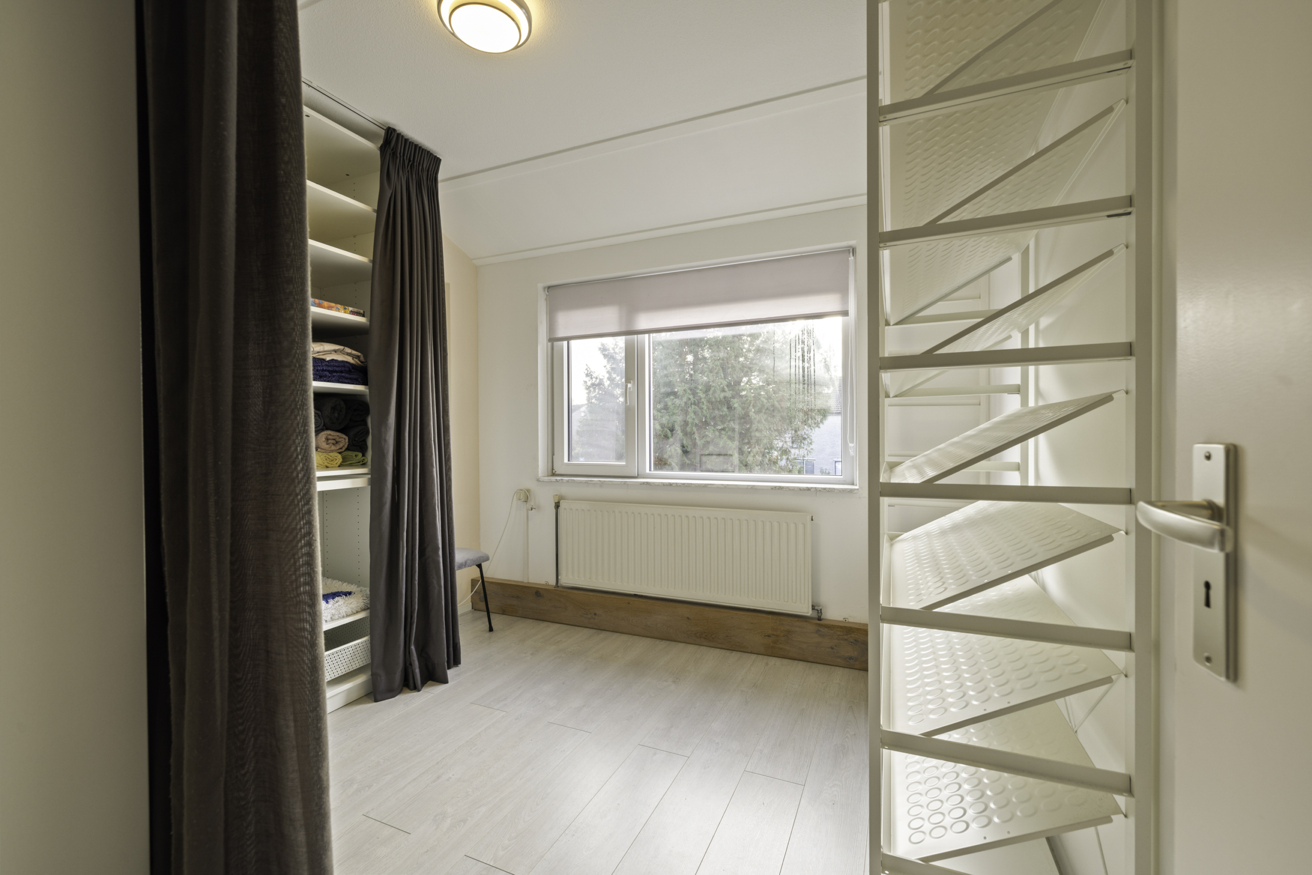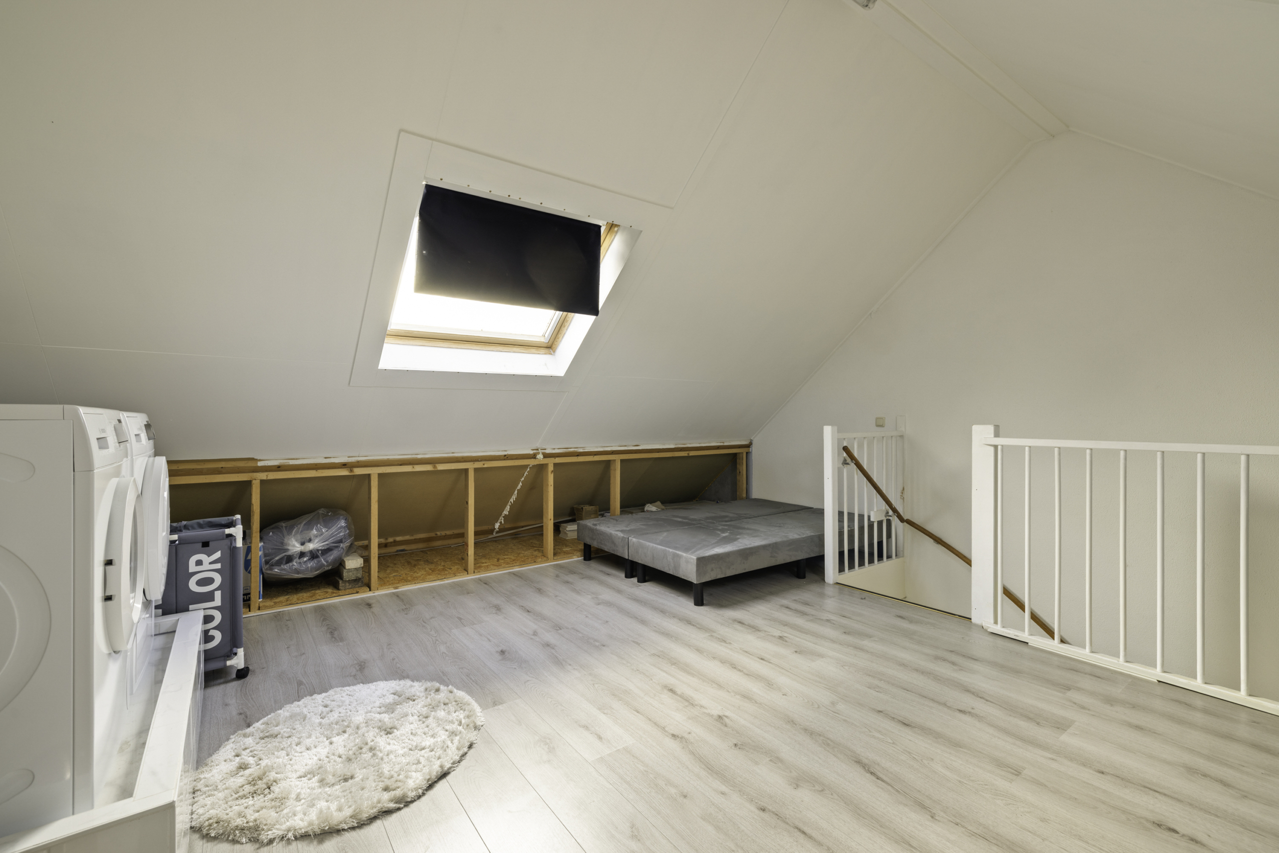 Op de eerste verdieping bevinden zich drie goed ingedeelde slaapkamers. Eén van de kamers is ingericht als stijlvolle walk-in closet, terwijl de andere twee perfect zijn als slaap- of werkkamer. De nette badkamer is voorzien van een douche en wastafel. De zolderverdieping is verrassend ruim en dankzij het dakraam heerlijk licht. Deze verdieping leent zich uitstekend als extra slaapkamer, werkruimte of hobbykamer.Buitenleven & voorzieningen