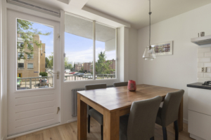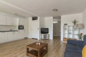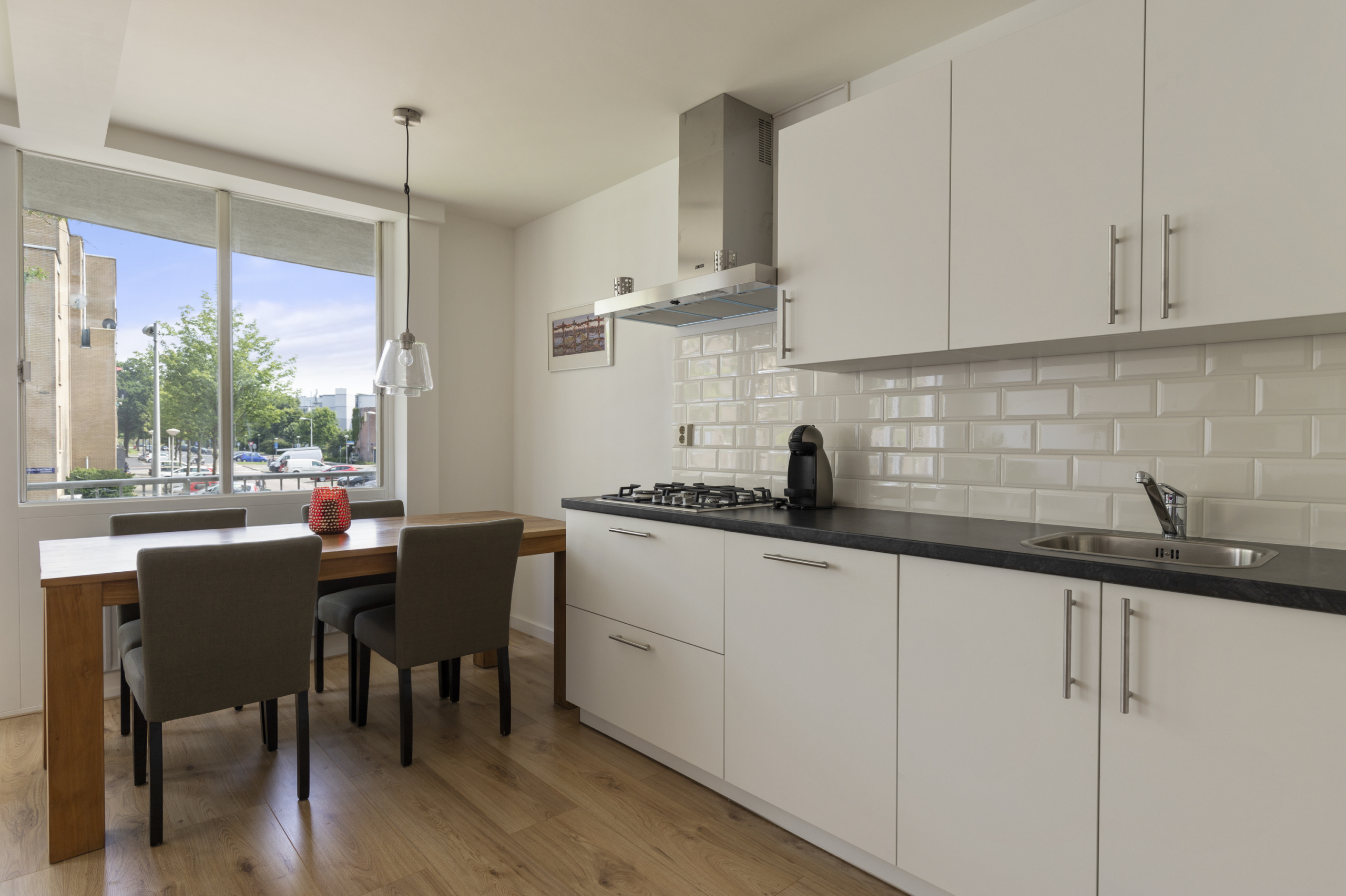 Via de hal bij binnenkomst bereik je alle vertrekken van de woning. De woonkamer is ruim, licht en open van opzet, en vormt samen met de keuken een prettige leefruimte. Dankzij de renovatie en de strakke afwerking voelt het appartement direct verzorgd en instap klaar aan. De nieuwe laminaatvloer door het hele appartement versterkt het moderne karakter van de woning.De open keuken is voorzien van moderne inbouwapparatuur en biedt voldoende kastruimte, waardoor koken en voorbereiden van maaltijden efficiënt en aangenaam is.