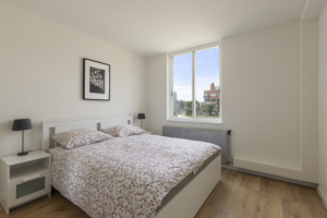 Het appartement beschikt over twee goed bemeten slaapkamers. De master bedroom is rustig gelegen en biedt voldoende ruimte voor een tweepersoonsbed en opbergmogelijkheden. De tweede slaapkamer is flexibel in te richten, bijvoorbeeld als logeerkamer, werkkamer of extra slaapkamer.