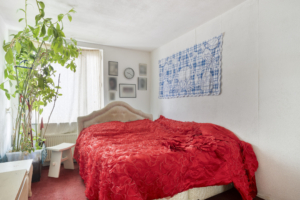 Beide slaapkamers grenzen aan de hal en zijn prettig van formaat. Ze bieden voldoende ruimte voor een bed, kast en bureau, waardoor elke kamer geheel naar wens kan worden ingericht. Of u nu een rustige slaapkamer, een werkplek of een combinatie van beide wenst: de mogelijkheden zijn talrijk.Sanitair