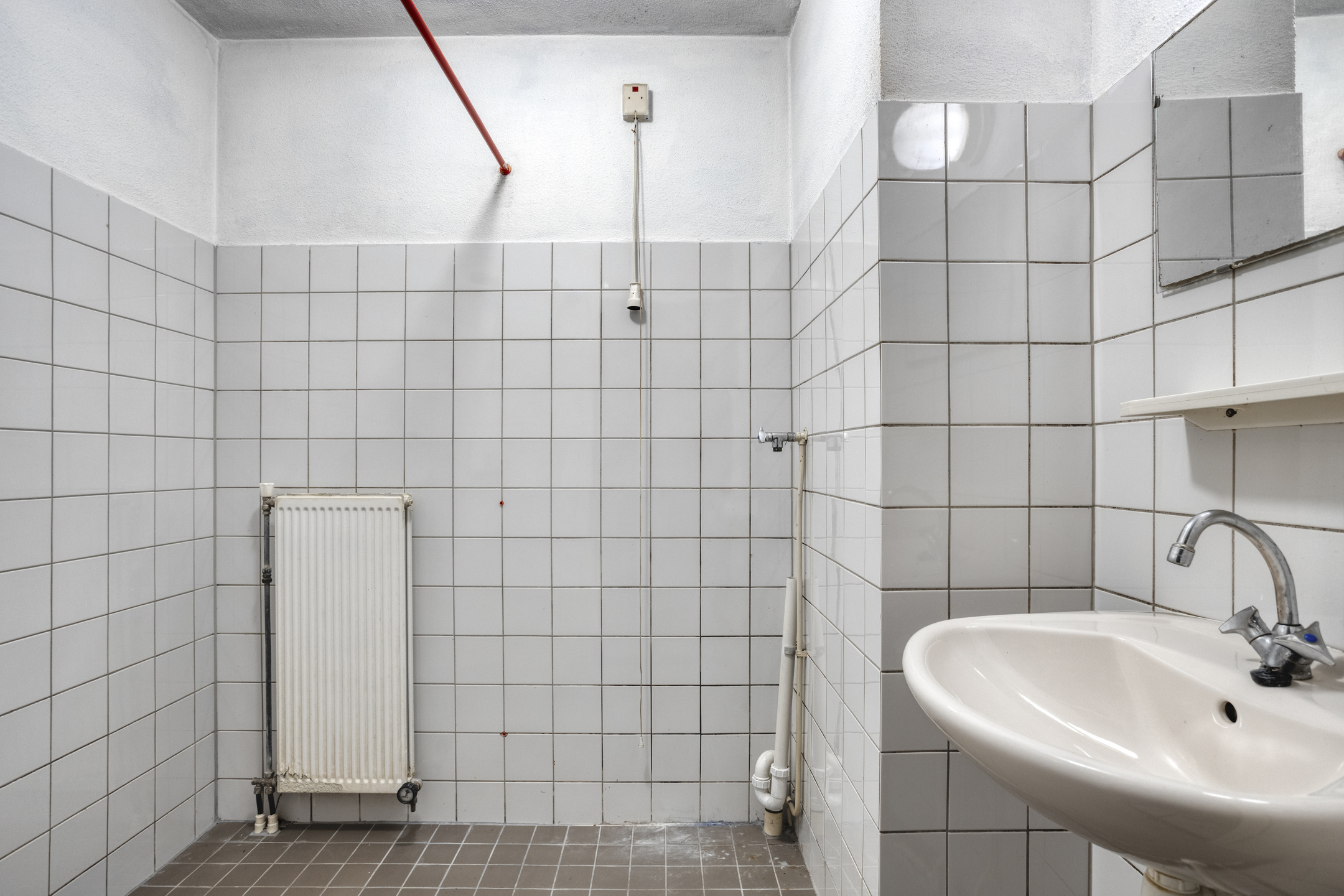 De badkamer, eveneens grenzend aan de hal, is volledig betegeld en voorzien van een open douche, een wastafel met spiegel, opbergmeubel én een aansluiting voor witgoed. De ruimte is functioneel, maar verdient een moderne touch om weer helemaal van deze tijd te zijn. Met een vernieuwde inrichting kan dit zich ontpoppen tot een frisse en comfortabele badkamer.Buitenruimte